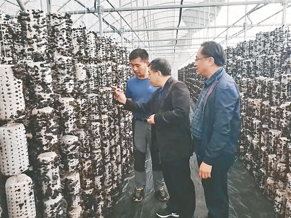 科研人員對黑木耳規(guī)模化生產(chǎn)進(jìn)行技術(shù)指導(dǎo)。