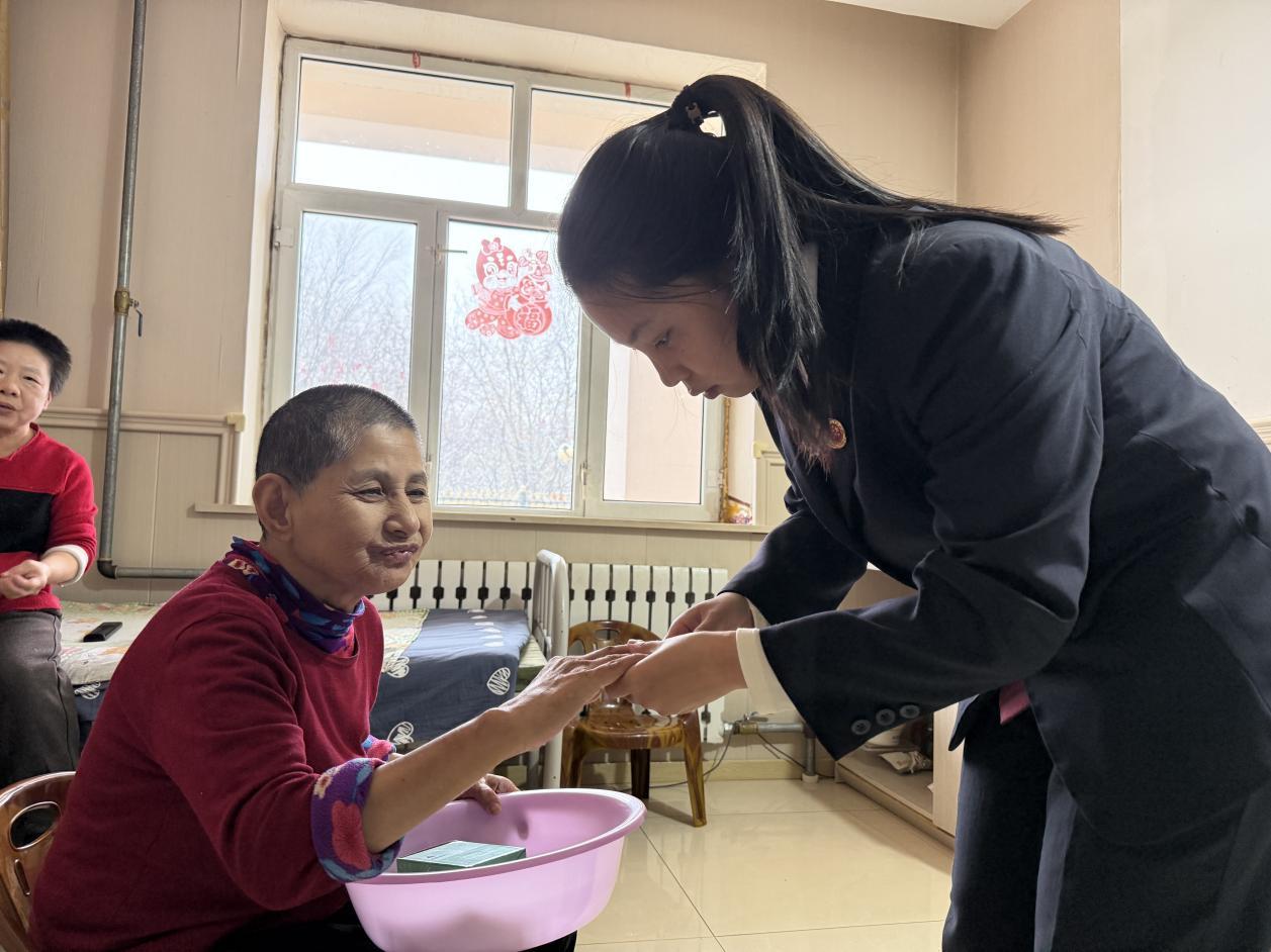 在暖心服務(wù)環(huán)節(jié),干警們將準備好的洗手盆、水杯等生活用品及普法宣傳手冊逐一發(fā)放給老人,細心詢問老人的生活與身體狀況。針對行動不便的老人,干警們俯下身來,為他們修剪指甲、清理指甲縫隙,其間還陪著老人聊起家常,從生活瑣事到健康養(yǎng)生,貼心的舉動讓敬老院處處洋溢著溫情,讓老人們真切感受到了來自檢察機關(guān)的關(guān)懷。